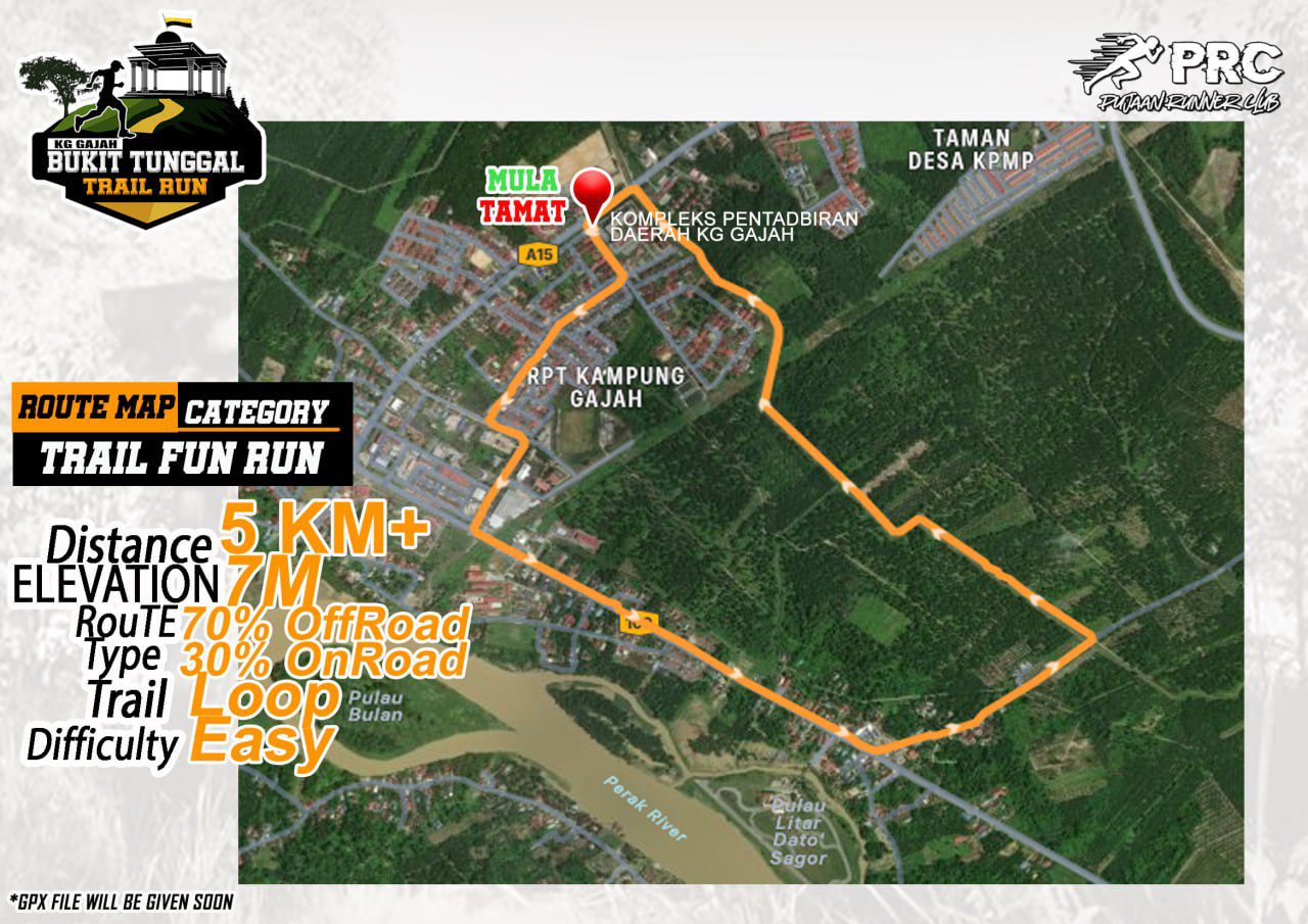 Tempat Mula/Tamat : Kompleks Pentadbiran Daerah Kg Gajah
