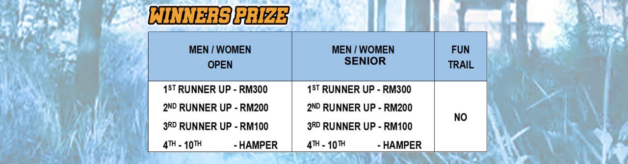 - Adalah menjadi tanggungjawab peserta untuk memastikan anda sihat secara fizikal untuk melengkapkan jarak yang telah anda daftarkan, memantau kesihatan anda semasa perlumbaan, termasuk mengetahui bila perlu menarik diri daripada perlumbaan jika anda tidak lagi dapat meneruskan perlumbaan.