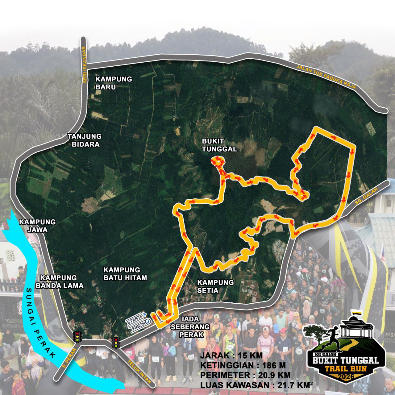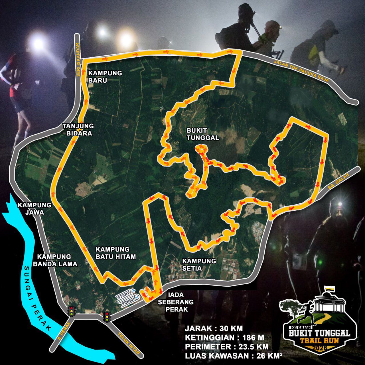 This race will showcase the challenge and fascinating trail all the way to Bukit Tunggal,Kg Gajah,Perak. This race track is suitable for beginner runners and serves as a warm-up or recovery track for professional runners.
