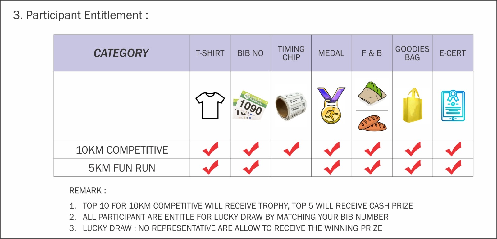 THERE WILL BE NO RACE PACK OR T-SHIRT COLLECTION ON EVENT DAY. ALL UNCOLLECTED EVENT T-SHIRTS MAY BE REDEEMED AFTER THE EVENT (11am – 12pm [1 hr] AT EVENT SITE). ANY UNREDEEMED ITEMS AFTER THIS PERIOD WILL BE FORFEITED.