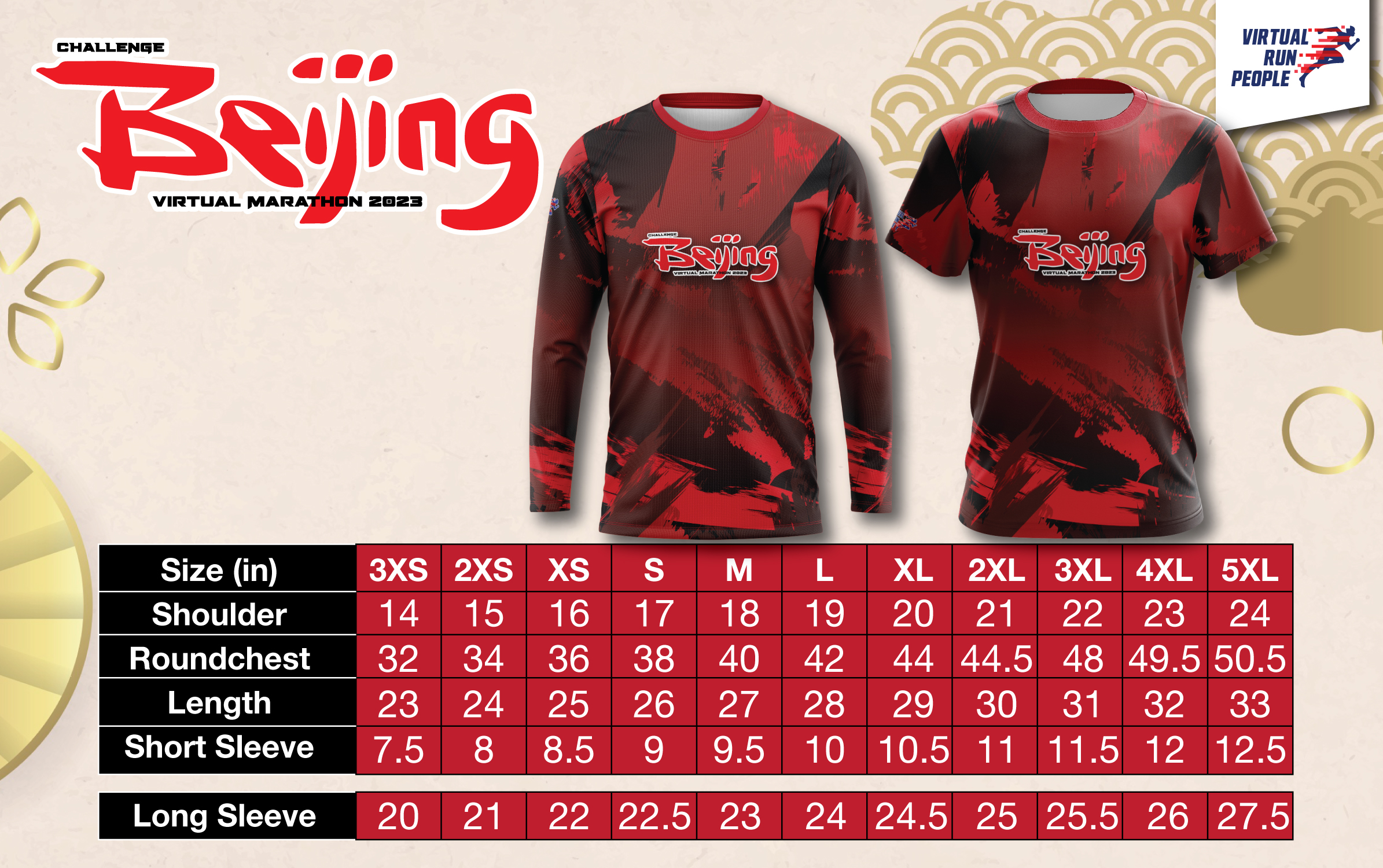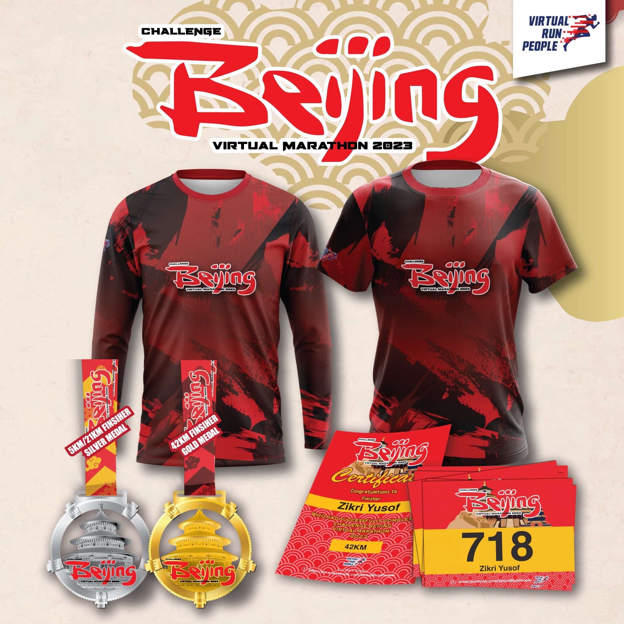 Challenge Beijing Virtual Marathon 2023 Dry-fit Finisher shirt (Distance Printed) (Option to upgrade from short sleeve to long sleeve T-Shirt for all categories - extra RM10)