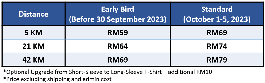 2. Dry-fit Finisher Shirt (Option to upgrade from short sleeve to long sleeve T-Shirt for all categories - extra RM10)