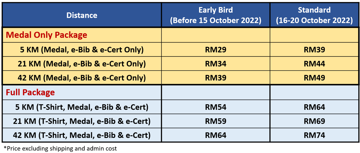 Running Distance – 5km, 21km & 42km