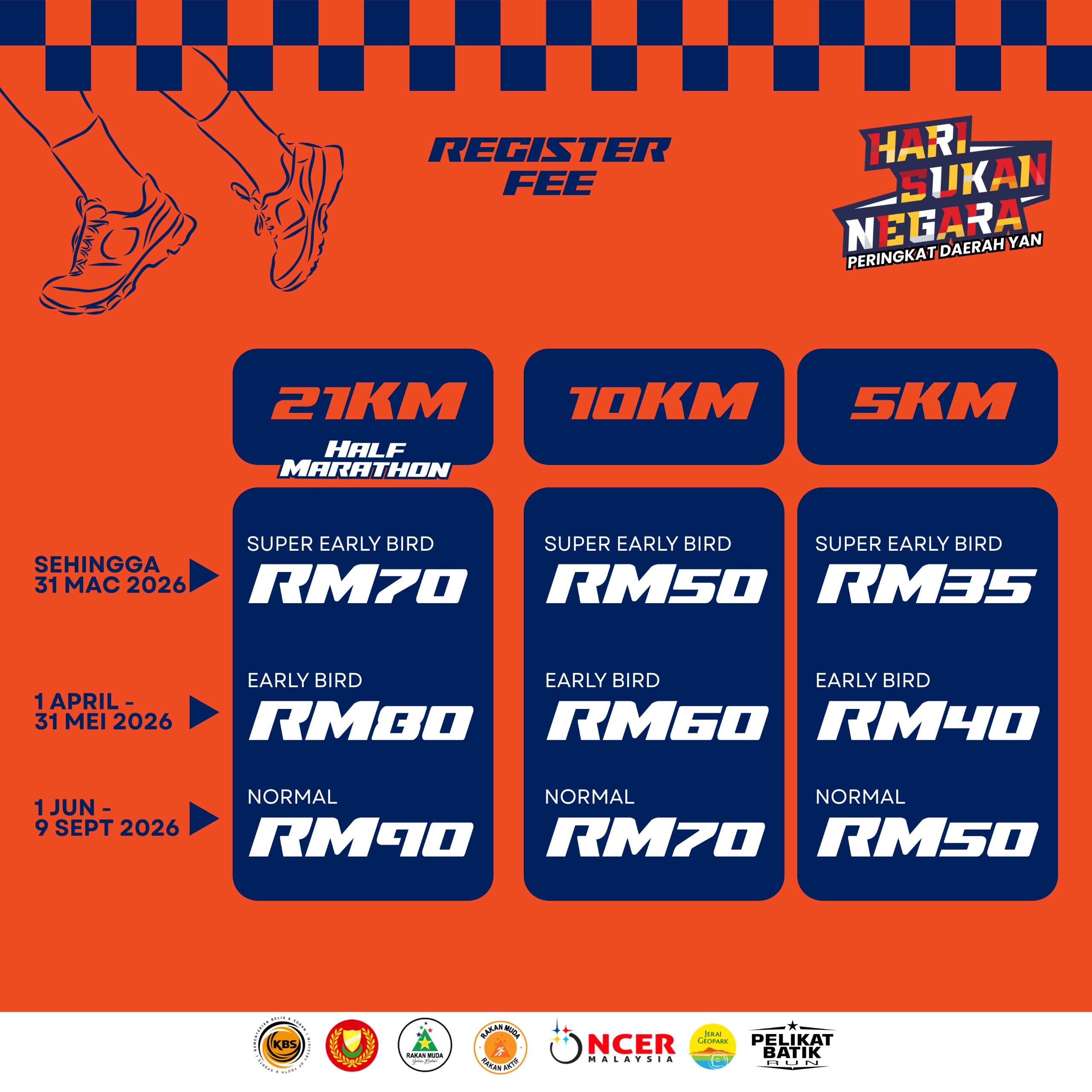 Hari Sukan Negara - Peringkat Daerah Yan 2026 registration is now open and the closing date is on the 9th of September 2026 or when all of the slots are filled.