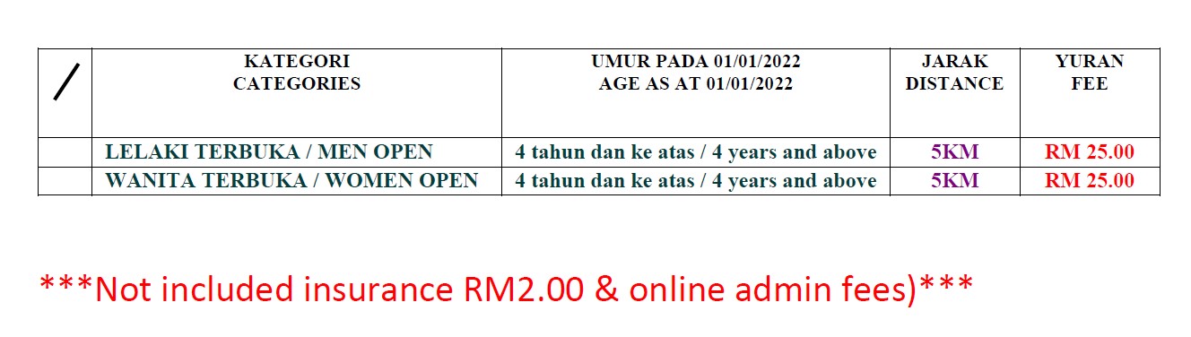 Terbuka kepada semua golongan masyarakat yang berumur 4 tahun ke atas pada 1/1/2022. / Open to all participants aging 4 years and above on 1/1/2022.