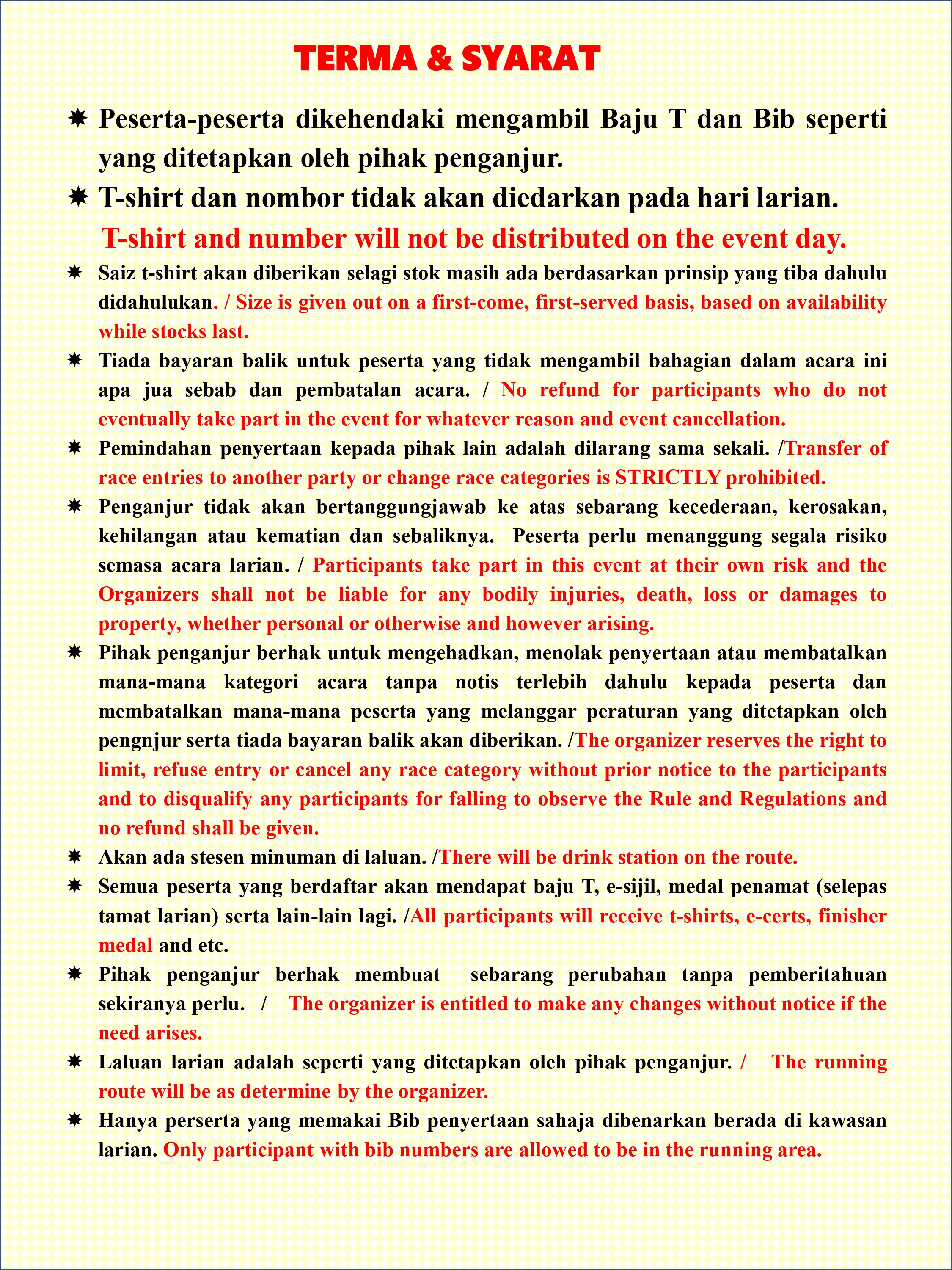 *Excluding insurance fee RM3 and admin fee